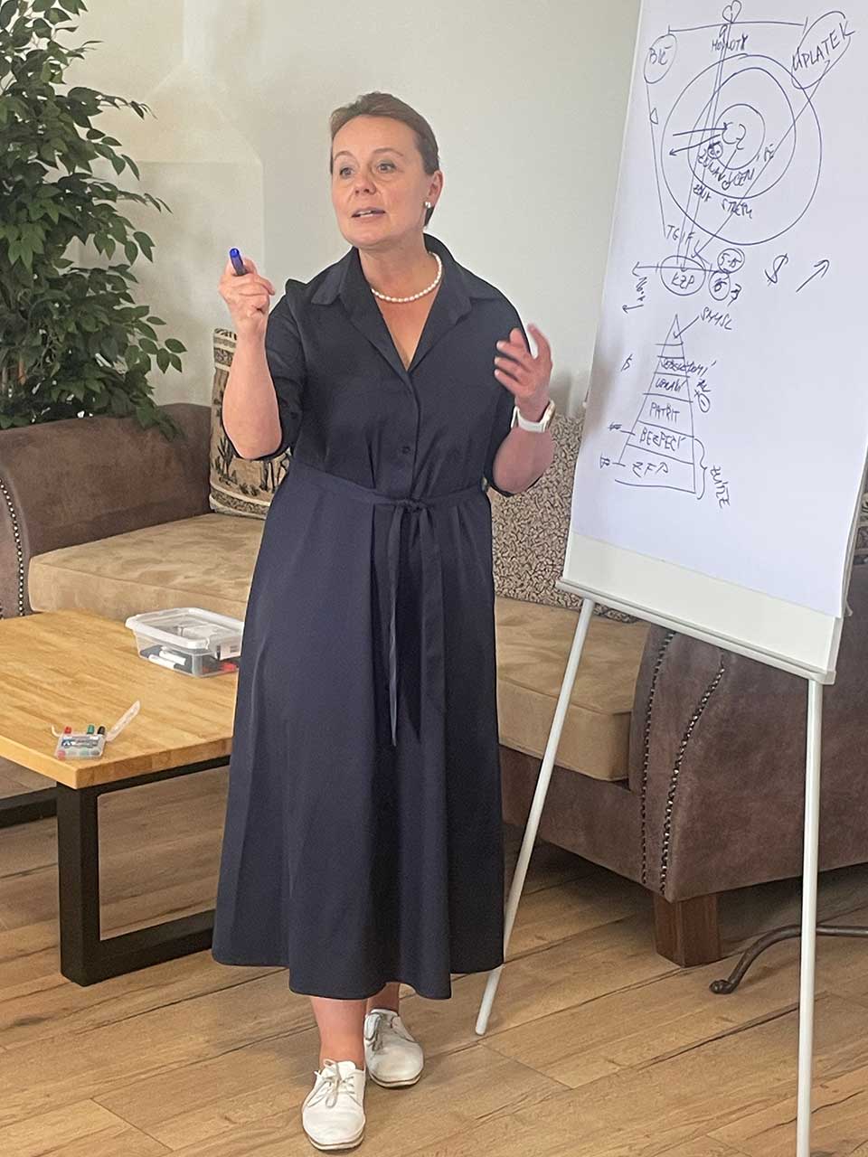 👉 HR ředitelka, lektorka, koučka – a žena, která ví, jaké to je vést tým i hledat rovnováhu mezi prací a životem.